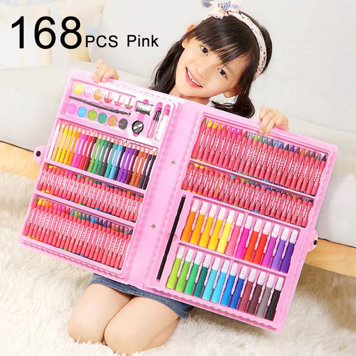 Surprise your little one with this magical Drawing art kit, that contains up to 208 pieces of art supplies all in one case. Comes built-in with a pop-up sketchpad! Including watercolor pens, colored pencils, crayons, oil pastels, paper clips, watercolor cakes, fine pens, and other art tools, like a palette, ruler, eraser, and more. It’s worth mentioning that we have special lonely stickers, enough paper, clips, and A5 sketch pads.