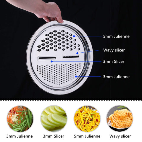 The set comes with a grater, a drain basin, and a solid basin for grating or washing potatoes, cucumbers, carrots, and other vegetables and fruits.